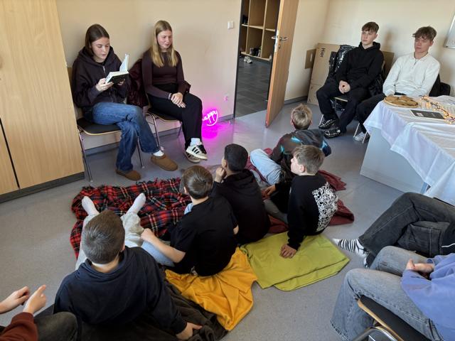 In den letzten Wochen drehte sich an unserer Schule alles rund ums Lesen. Bereits am Internationalen Vorlesetag verwandelten unsere Neuntklässler mehrere Räume in liebevoll gestaltete Leseorte und lasen den Schülerinnen und Schülern des 5. Jahrgangs spannende Geschichten vor – ein Erlebnis, das für Begeisterung und Lesefreude sorgte.